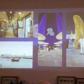 Pan Marcin podzielił swoją prelekcję na kilka części: codzienne życie, kultura, atrakcje turystyczne, jedzenie i ciekawostki. Cechą najbardziej wyróżniającą Katar jako państwo jest to, że na bardzo małej powierzchni mieszka ok. 300 tys. rodowitych Katarczyków i kilka milionów obcokrajowców, którzy pracują w zawodach mniej prestiżowych i za dużo mniejsze pieniądze.