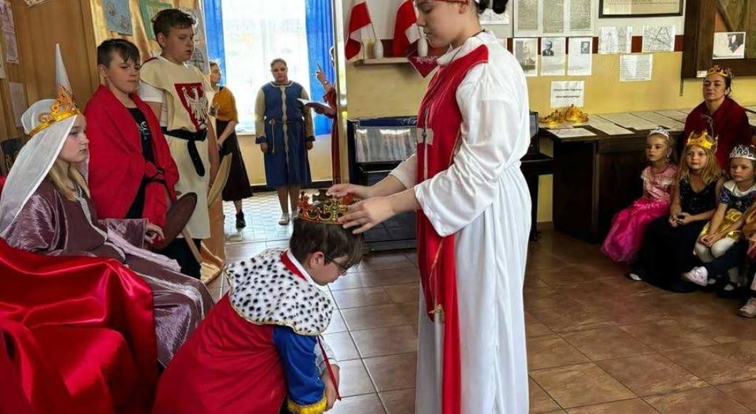 Jednym z najważniejszych momentów projektu była żywa lekcja historii, podczas której uczniowie wcielili się w mieszkańców Polski sprzed tysiąca lat, rozważając znaczenie koronacji Bolesława Chrobrego. Kulminacją tych działań była zrealizowana z rozmachem inscenizacja koronacji z 18 kwietnia 1025 roku. Wszyscy uczestnicy z wielkim zaangażowaniem odegrali swoje role, a po ceremonii składali królowi gratulacje oraz wręczali mu własnoręcznie przygotowane prace – które monarcha z wdzięcznością przyjął.