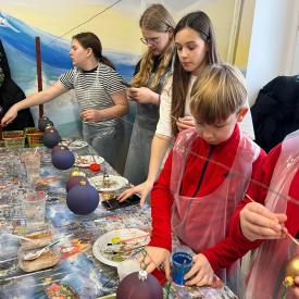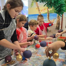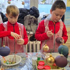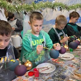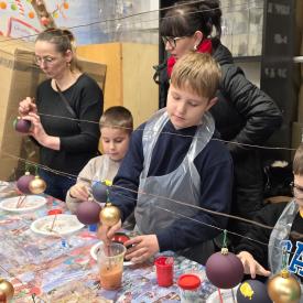 Dzieci zwiedziły fabrykę bombek, poznały poszczególne etapy produkcji tych ozdób choinkowych. Potem uczestniczyły w samodzielnym malowaniu i ozdabianiu bombek.