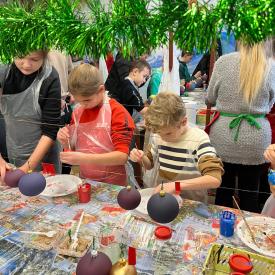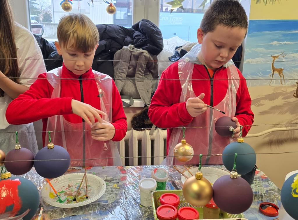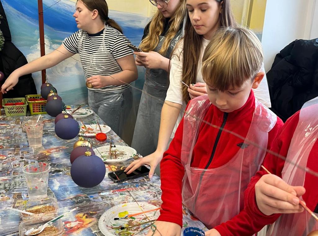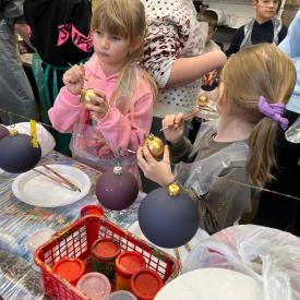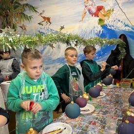 Dzieci zwiedziły fabrykę bombek, poznały poszczególne etapy produkcji tych ozdób choinkowych. Potem uczestniczyły w samodzielnym malowaniu i ozdabianiu bombek.