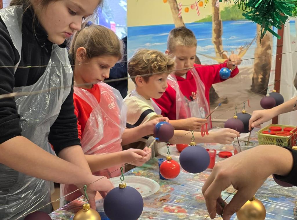 Dzieci zwiedziły fabrykę bombek, poznały poszczególne etapy produkcji tych ozdób choinkowych. Potem uczestniczyły w samodzielnym malowaniu i ozdabianiu bombek.